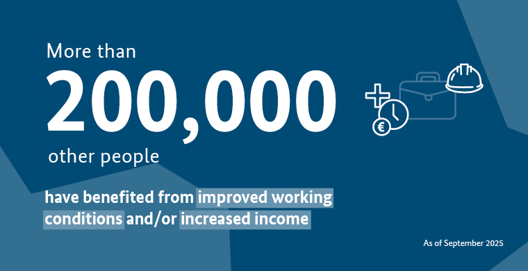 The development objective is to work together with companies to create good jobs and to improve working conditions and social protection in its eight African partner countries: Côte d’Ivoire, Egypt, Ethiopia, Ghana, Morocco, Rwanda, Senegal and Tunisia. The Special Initiative is making a targeted contribution to shaping the socio-ecological transformation of the private sector in line with a just transition, and to creating more and better jobs for women.